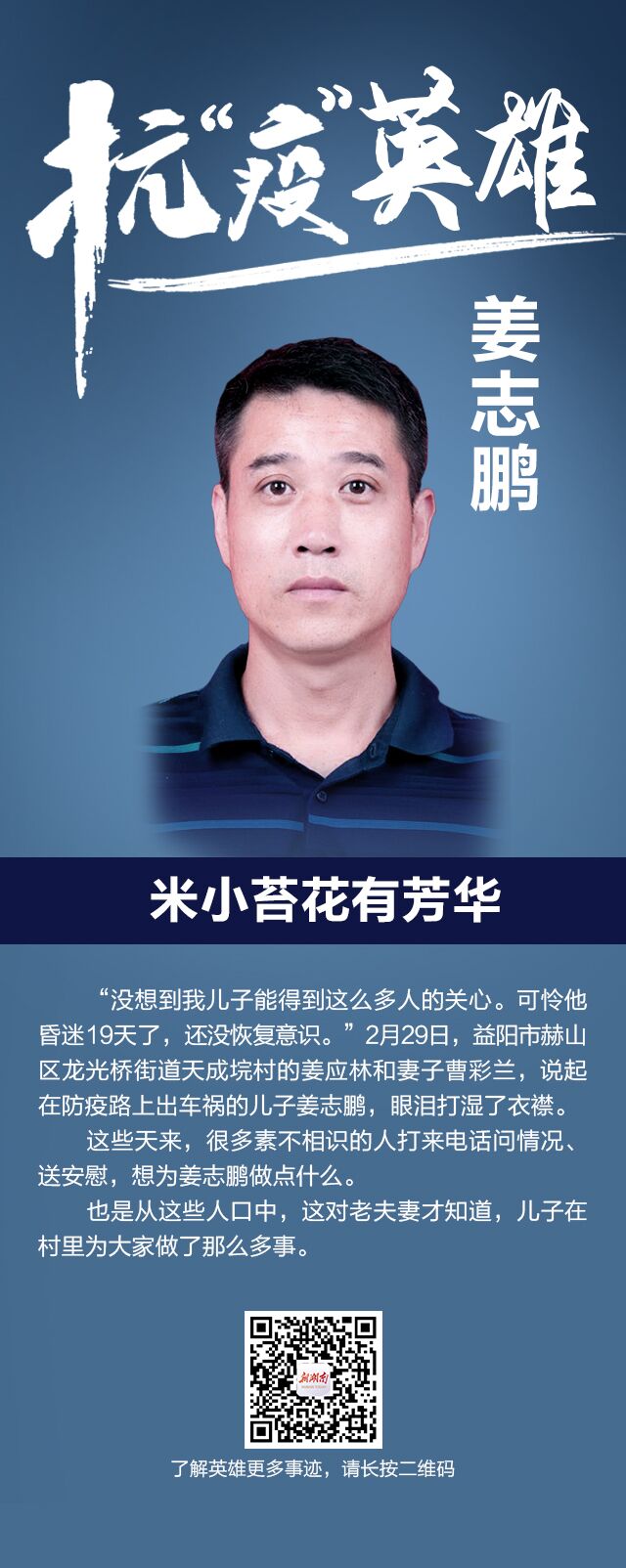 将个人利益置之度外的姜志鹏,对家人多有歉疚。这些天来一直守在医院的妻子叶卫敏也说,他到村委工作后,经常人冒看见人,钱冒看见钱,没少埋怨他。“但慢慢地看到群众都夸赞他、信赖他,我也觉得脸上有光。”