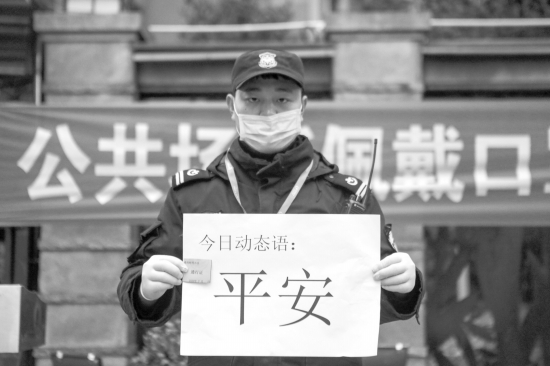 2月5日,长沙一小区保安展示业主进入小区所需的“今日动态语”。图/记者张云峰