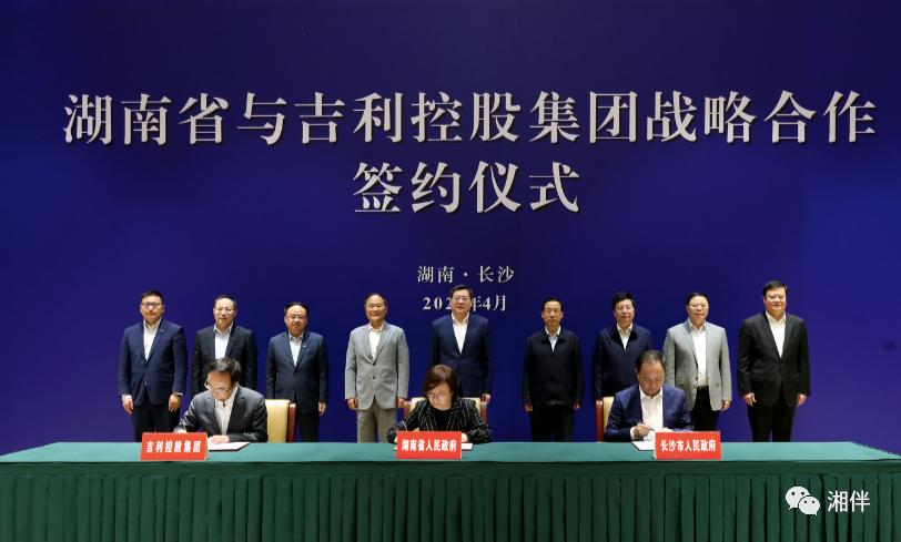 4月27日上午,省政府、长沙市政府与浙江吉利控股集团在长沙分别签署战略合作协议。湖南日报记者罗新国 摄