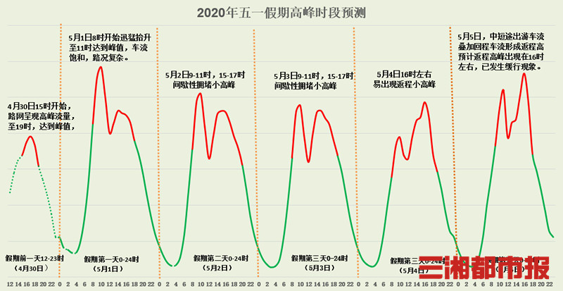 华声在线4月27日讯(三湘都市报·华声在线见习记者 周可 通讯员 江钻)记者今日从湖南省高速公路路网运行监测指挥中心获悉,根据历年“五一”期间路网流量数据,结合今年路网运行走势分析,预测2020年“五一”假期(5天)全省高速公路出入口总流量为1845万辆,日均流量369万辆,较去年日均同比增长12%,约为日常流量的2倍。
