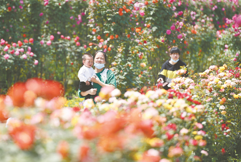 4月26日,湖南省森林植物园世界名花园,市民在观赏盛开的月季、牡丹。该园今年栽种了100多个品种、3万余株月季和玫瑰,目前均已进入盛花期,成为市民和游客踏春赏花的好去处。湖南日报·华声在线记者 田超 摄