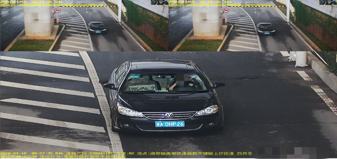 湘A2JL82在湘府路高架快速路新开铺路口驾驶时拨打接听手持电话的,罚款200元、记2分。