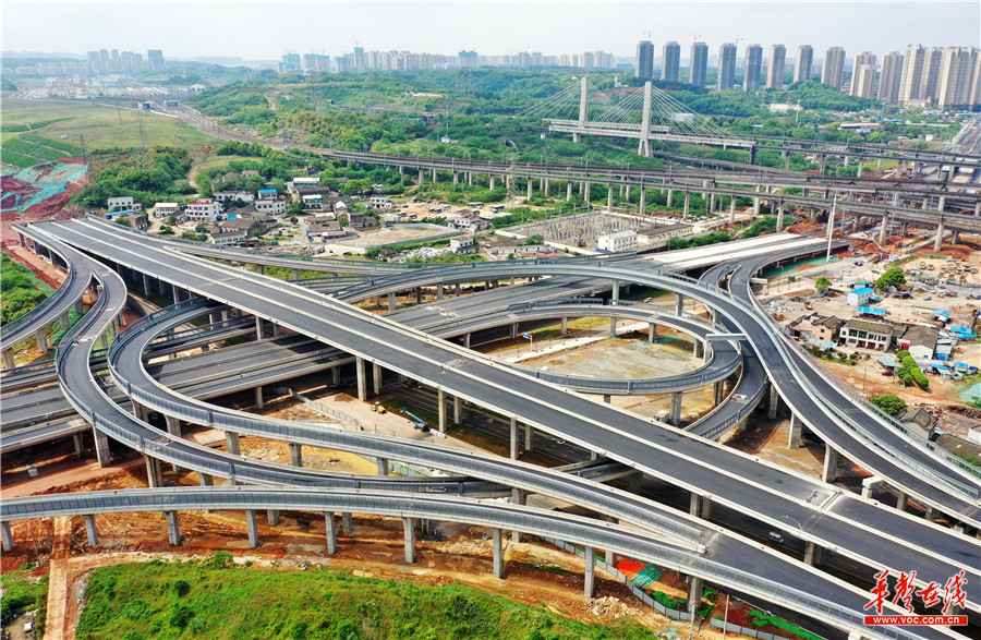 4月19日,长沙市湘府路快速化改造工程雨花大道(原红旗路)立交桥已完成沥青路面摊铺,即将进行交通标线施划、路灯安装等扫尾施工。该立交桥为全互通立交,采用苜蓿叶造型,立交桥离地面最高处达23.77米,桥梁标准宽25米,计划于6月底竣工。