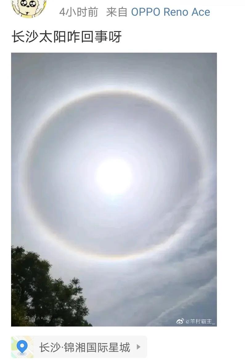 湖南省专业气象台高级工程师邓晓春说,这是一种日晕现象。