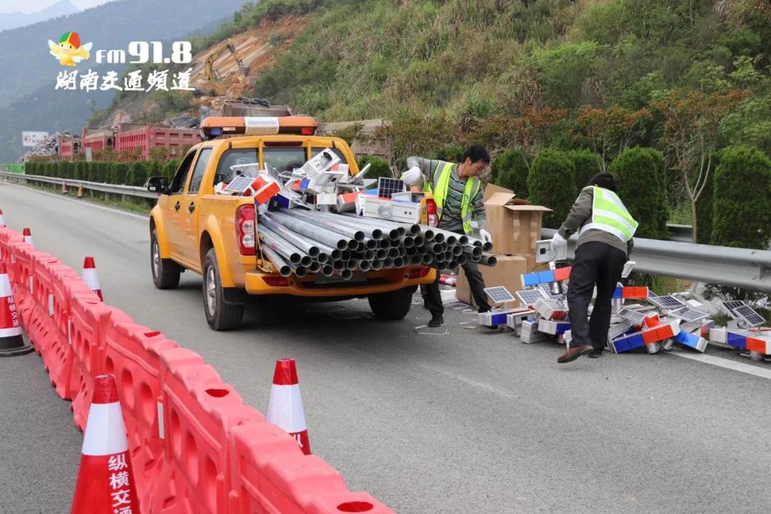 4月9日23时30分左右,道路东半幅(南往北方向)清理完成。