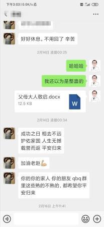 赵春光把信转给一位相识多年的挚友,把爱人的微信号也留给了他。叮嘱朋友说:“如果真有那么一天,你就加我爱人微信,再把这封信转给他们”。