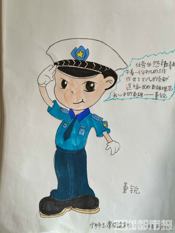 在孩子们的笔下,既有伟大的无产阶级革命家,也有身穿防护服看不清脸庞的白衣战士,既有宁死不屈的抗日战士,也有在普通岗位上默默奉献的普通民警……虽然笔法稍显稚嫩,但孩子们对英烈的敬意跃然纸上,对英雄的哀思悠远绵长。