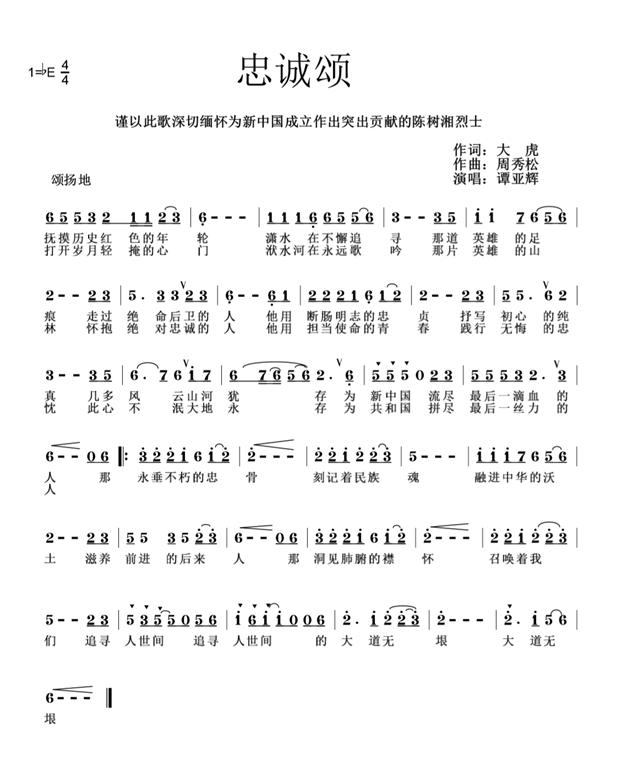 为纪念树湘精神,道县最新发布了的原创歌曲《忠诚颂》,通过一首颂歌,实现时代心灵的碰撞,完成与树湘精神的隔空对话。