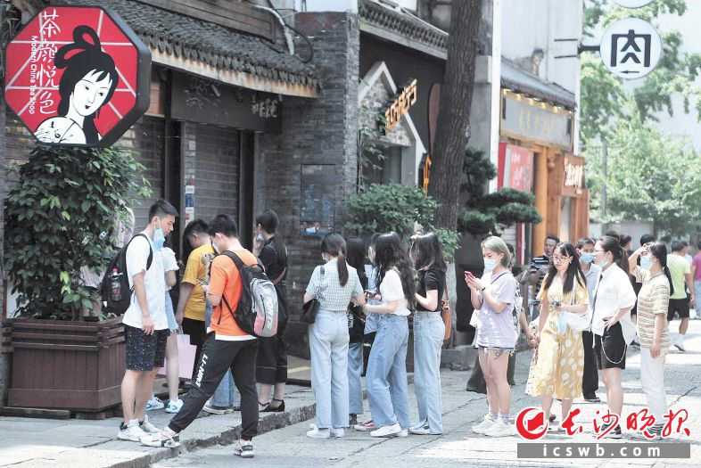 当天,记者在位于太平街的一家“茶颜悦色”店内,遇到了从山东潍坊来的女孩范榴、杨宗莉。她俩一个是长沙人、一个是烟台人,都是潍坊某高校的大三学生。这次是范榴邀请她的闺蜜杨宗莉来长沙品尝“茶颜悦色”,让山东妹子大呼:“好喝!好爽!”