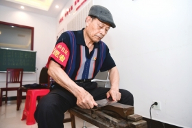 老人退休后自学磨刀免费服务社区居民,最多时一天磨刀156把