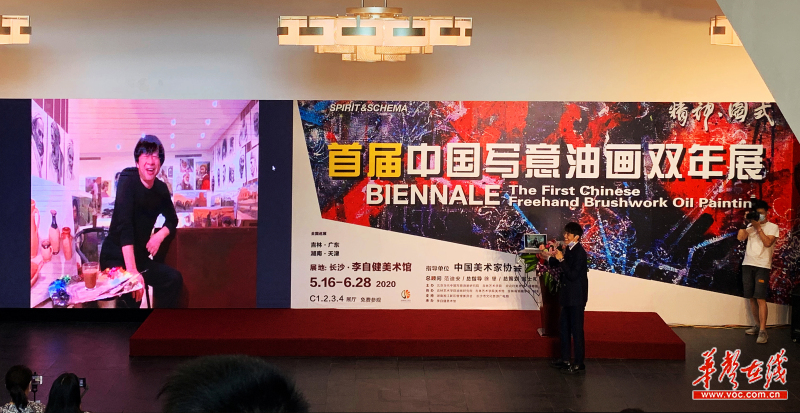 美术馆馆长李自健因当前国际疫情紧急状况,至今困居北非摩洛哥。通过视频连线,李自健表达着对展览的关切,他说道:“看到这么多作品齐聚一堂,虽然没有到现场,但已经感觉到心理和视觉上的冲击。这些作品在一起,就像一场大型的交响乐。中国写意油画结合中国精神的内涵,传递的是文化上的自豪与自信。”