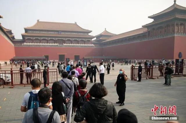 5月1日,游客排队准备进入故宫博物院(图/中新网)