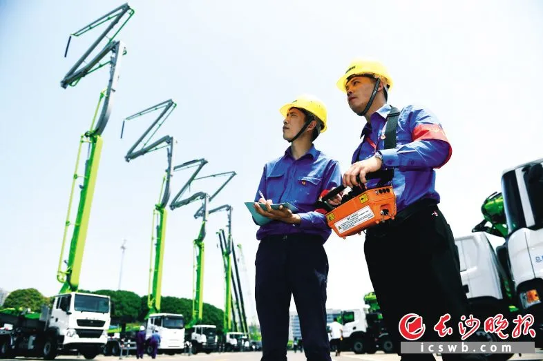 中联重科混凝土泵送机械产品发货青年突击队的队员对即将发货的产品进行检查