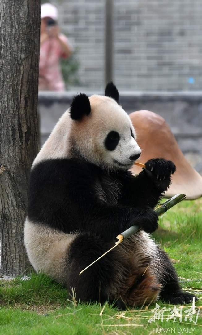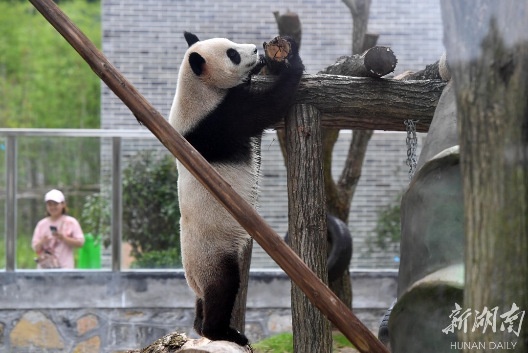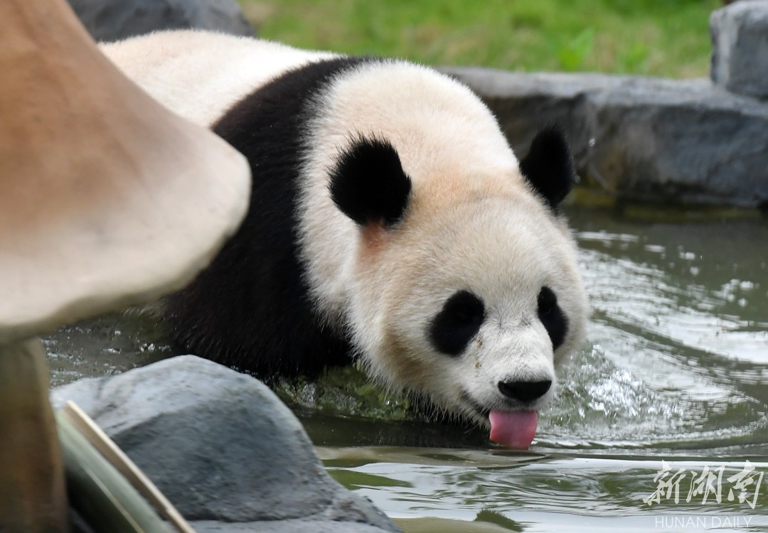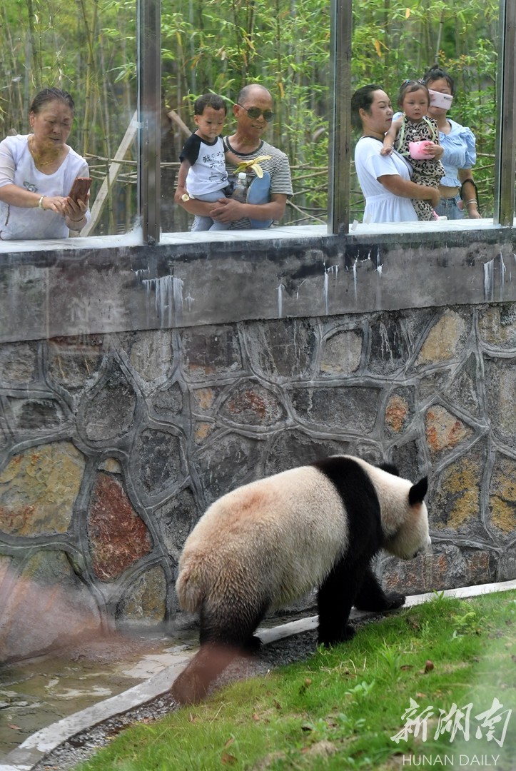 6月28日,从四川转运安家凤凰中华大熊猫苑的8只大熊猫,经过近一个月适应期后正式与公众见面,憨态可掬,惹人喜爱。湖南日报·华声在线首席记者 郭立亮 摄