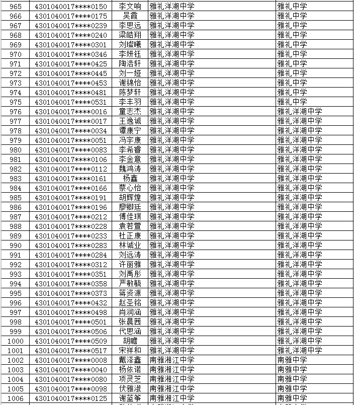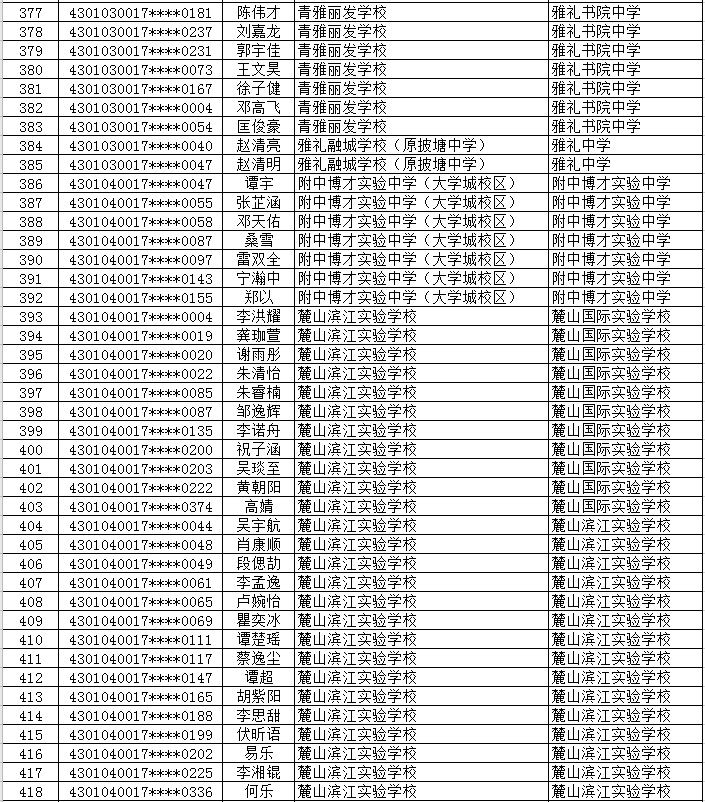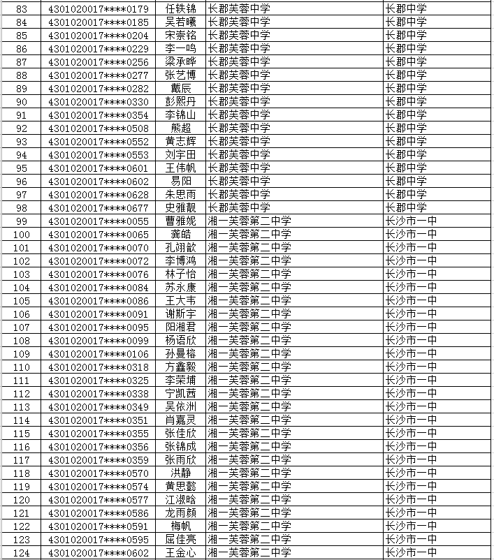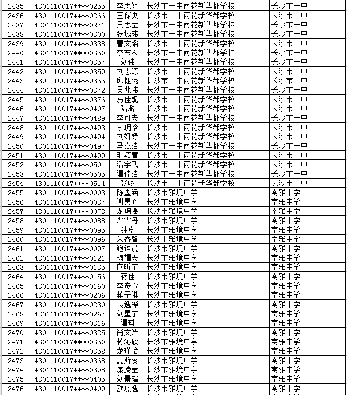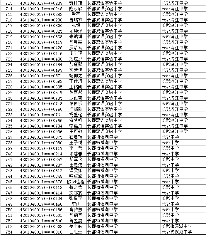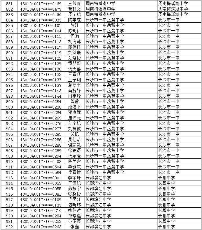 经过前期的宣传发动、综合测评和志愿填报等程序,经市教育局中招办审定,2020年长沙市(城区)初中升高中直升生名单已确定,现予以公示。
