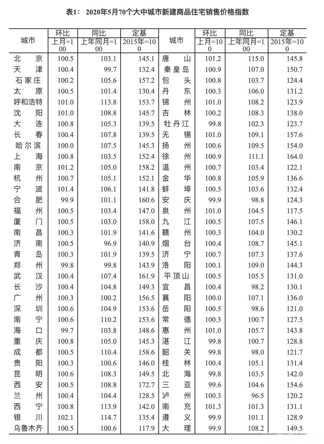 国家统计局城市司首席统计师孔鹏解读认为,5月份,统筹推进疫情防控和经济社会发展工作取得积极成效,生产生活秩序持续恢复,住房需求得到进一步释放,70个大中城市房地产市场总体稳定,价格略有上涨。