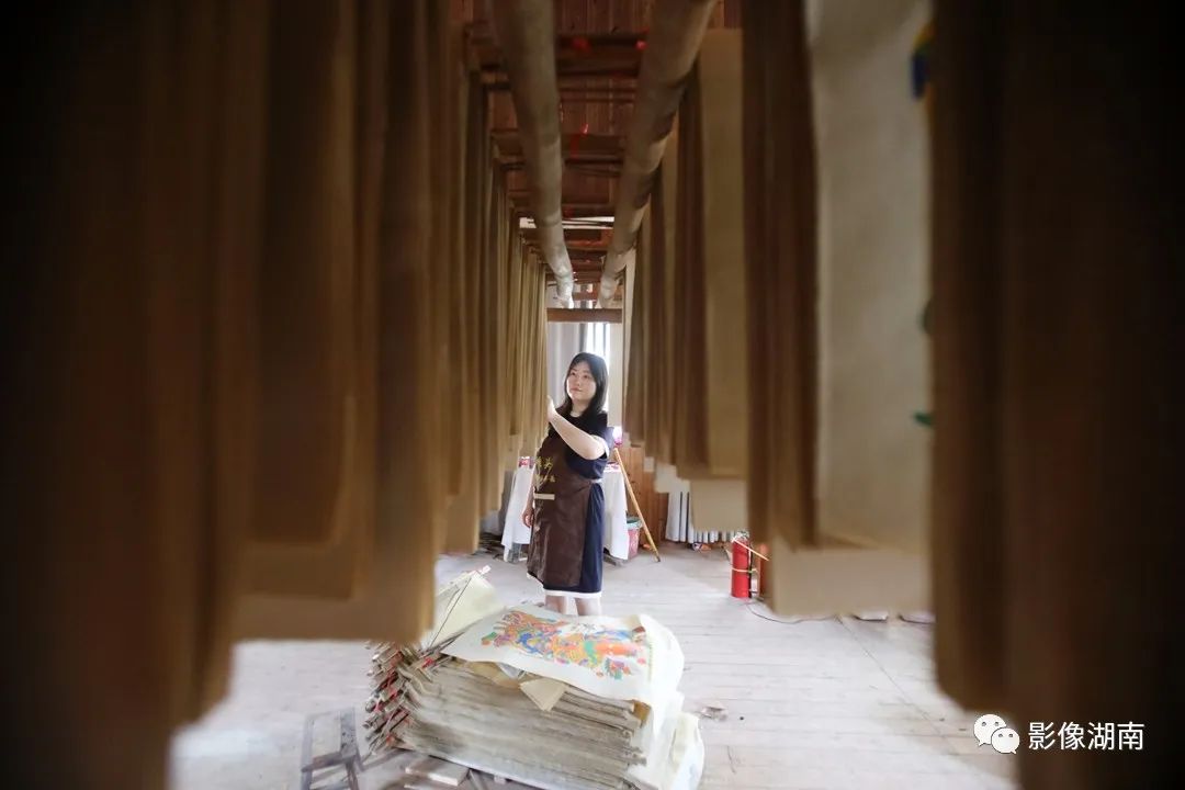 作坊的阁楼上挂满了完成和未完成的年画。“爷爷奶奶的坚守,让湖南唯一的木版年画保存流传下来。我决定要将这门手艺好好传承下去。”钟星琳说。