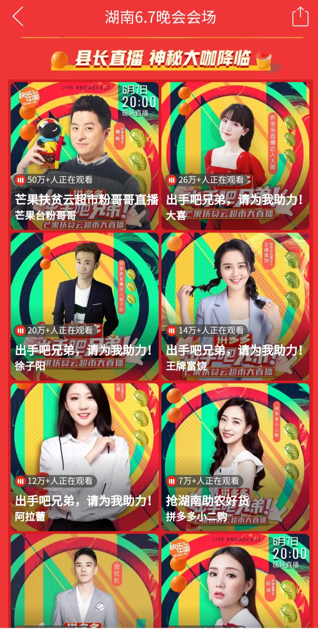 因此,在这史上首场串屏直播中,湖南卫视不仅串联了现场20个直播间,串联了线下几百个直播间,也串联了在芒果扶贫云超市上、湖南田间地头农民中,千千万万的直播间。