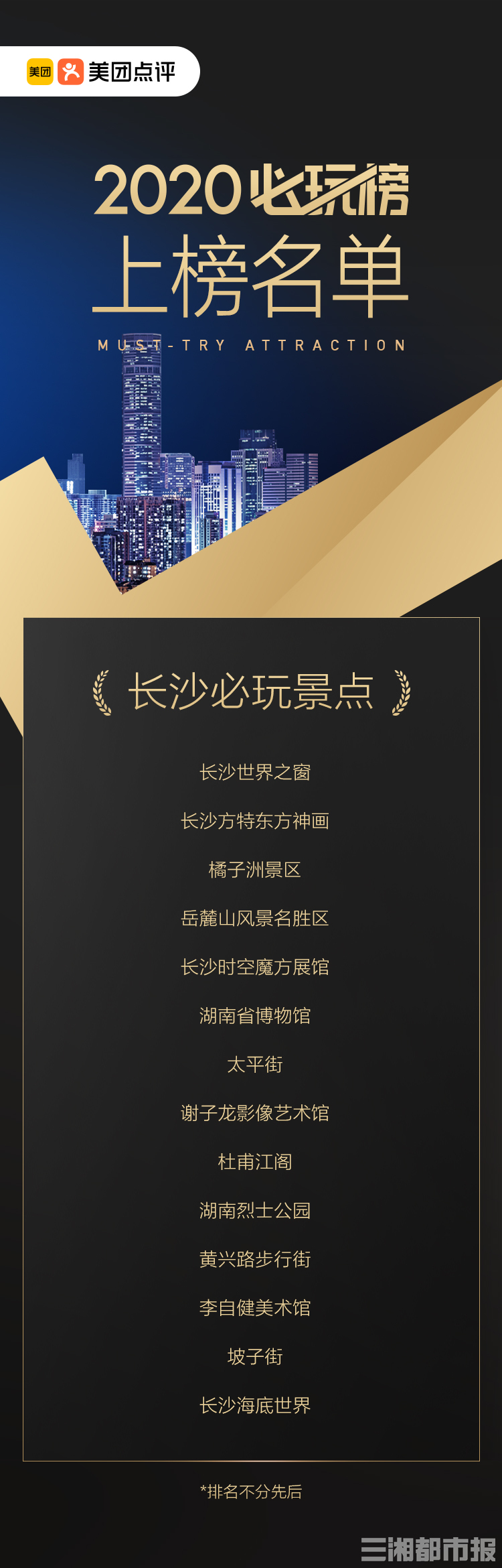 华声在线6月9日讯(三湘都市报·华声在线记者 黄亚苹 通讯员 王曾蓁) 今日,大众点评发布2020“必系列”榜单,其中,步步高梅溪新天地、长沙IFS、长沙海信广场等5家商场入选“必逛榜”;长沙方特东方神话、橘子洲景区、湖南省博物馆、谢子龙影像艺术馆等14家景区入选“必玩榜”;北辰洲际酒店、尼依格罗酒店、世纪金源大饭店、瑞吉酒店等34家酒店入选“必住榜”,上榜酒店数量居全国第九位。