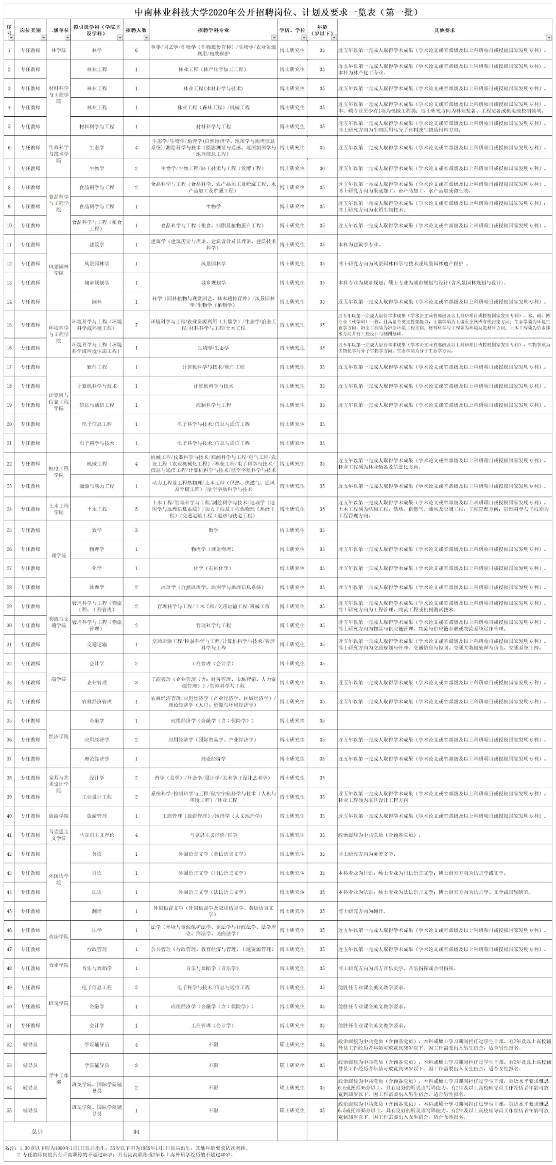 此次招聘岗位55个(岗位1至51为专任教师岗位,岗位52至55为辅导员岗位),招聘计划94名,均为专业技术岗位。