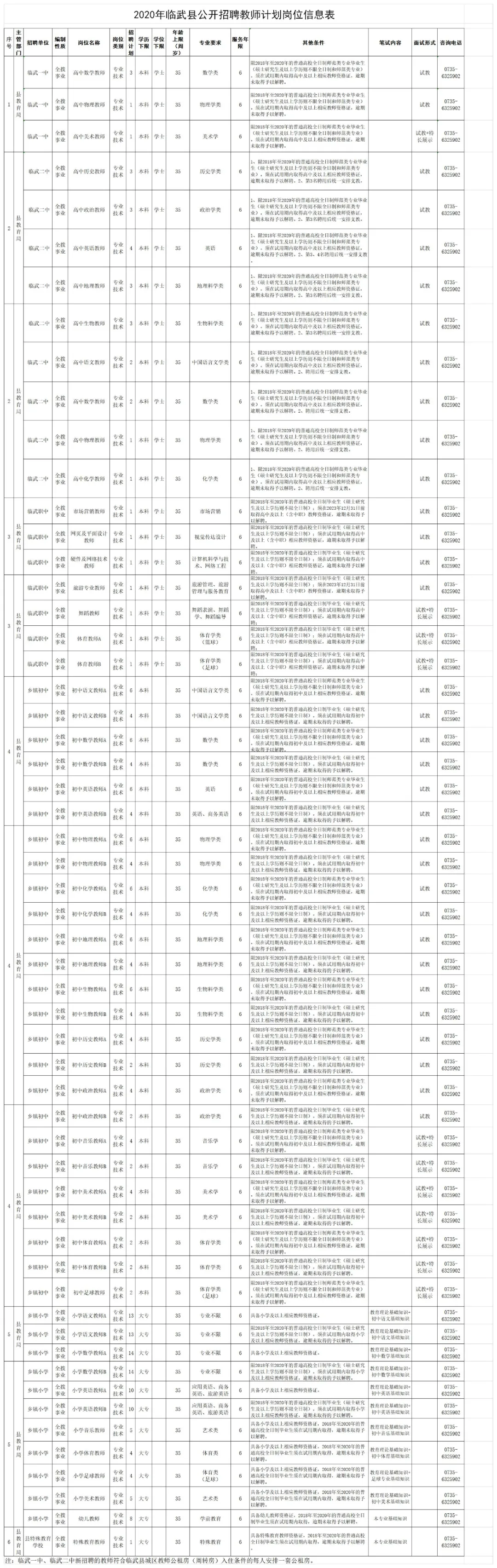 1.计划招聘教师235名,具体招聘岗位、计划数及资格条件等详见《2020年临武县公开招聘教师计划岗位信息表》。
