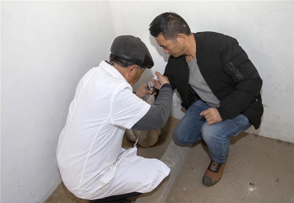 在位于江西省都昌县多宝乡的鄱阳湖候鸟都昌县救治医院,李春如(左)给一只接受救治的小天鹅注射药物(2019年12月4日摄)。新华社记者 张浩波 摄