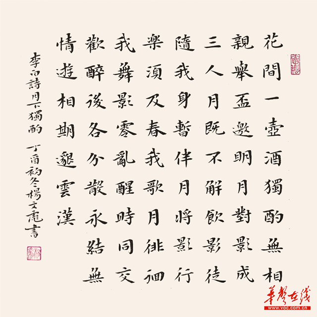 执着的杨文彪并未就此放弃,开始主攻楷书,先后学过颜真卿、赵孟頫、文徵明、二王、钟繇、智永等,对魏晋小楷、智永千字文、隋唐写经尤其苦下工夫。在名师不遗余力的指导和业内高手的帮助下,杨文彪的书艺日进。慢慢地,他从遍仿名家中打磨出自己的风格。