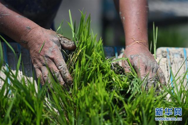 近日,在湖南省益阳市,人们紧抓农时,抢收早稻、抢插晚稻。各种农机也活跃在田间地头,成为农业生产主角,加快了“双抢”进度。在益阳市南县,46岁的汤烈辉马不停蹄地走家串户,为农户们修理、保养农机;100多公里外的益阳市赫山区米香村,66岁的冷德仁站在插秧机上眼疾手快地往秧轨中喂秧;不远处的另一片稻田里,28岁的夏胜驾轻就熟地操作无人机喷洒封闭除草药……他们用自己的双手,为粮食丰产做出贡献。 新华社记者 薛宇舸 摄