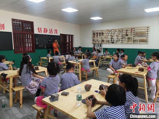 小朋友在竹山塘工业遗址公园内体验研学项目。 刘曼 摄