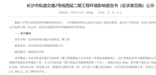7月11日,长沙市轨道交通集团对外公示长沙市轨道交通2号线西延二期工程环境影响报告书(征求意见稿)。公示内容显示,该工程起于长沙西站,止于既有地铁2号线最西段的梅溪湖西站,全长13.99公里。项目计划于今年9月开工建设,2025年2月建成通车。这意味着未来长沙地铁2号线将连通长沙火车南站与长沙西站,旅客坐地铁就能实现一东一西两座高铁站之间换乘。
