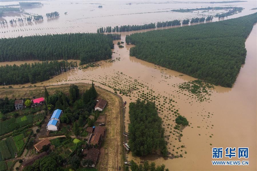 7月11日,在沅江市琼湖街道莲花岛村,洪水淹没了部分房屋和土地(无人机照片)。 新华社发