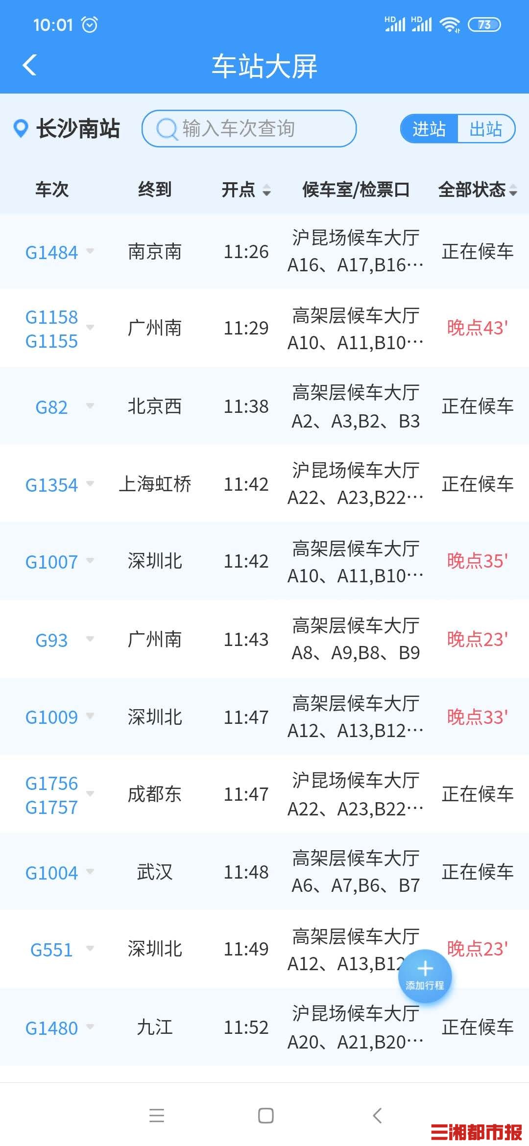 记者从岳阳站获悉,目前岳阳站晚点普速列车多为开往长沙、广州方向。据12306网站列车正晚点信息显示,部分途经长沙南站开往广州南、深圳北方向的动车组列车也有不同程度晚点,晚点时间从23分钟至59分钟不等。
