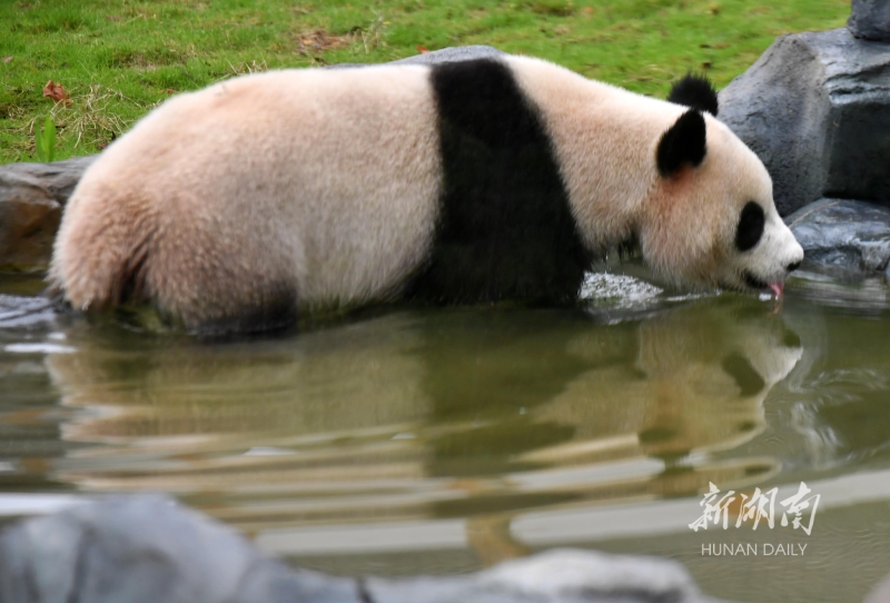 7月1日,大熊猫“京宝”在水中“泡澡”喝水,憨态可掬的模样引得驻足拍照的游客直呼“可爱”。当天,凤凰中华大熊猫苑开园,8只大熊猫正式与公众见面。湖南日报·华声在线首席记者郭立亮摄