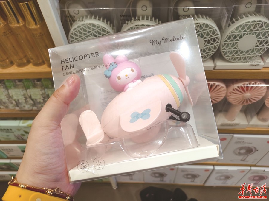 “门店电风扇货源紧缺,这款Hello Kitty联名款风扇销量不错,还剩最后一个库存,卖完就补不到货了。”名创优品华创店导购介绍,品牌与时下大热的大力水手、故宫文创、欢乐斗地主等均推出联名商品,在售的故宫宫廷百花图卷系列防晒伞仅售39.9元。