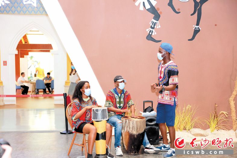 可可营销中心展厅内,非洲朋友进行文艺表演。