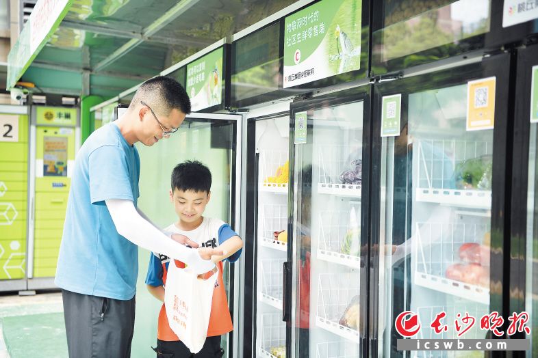 市民在无人智慧生鲜柜选购。长沙晚报全媒体记者 刘捷萍摄