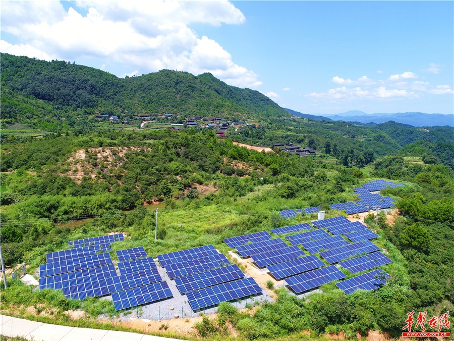 8月4日,辰溪县仙人湾瑶族乡溪台村,成片的光伏发电站太阳能板犹如镶嵌在深山中的“蓝宝石”。2018年,该村240千瓦光伏电站建成投产,每年收入达5万元,98户贫困户通过分红增收。 湖南日报·华声在线记者 徐行 通讯员 杨晓 摄影报道