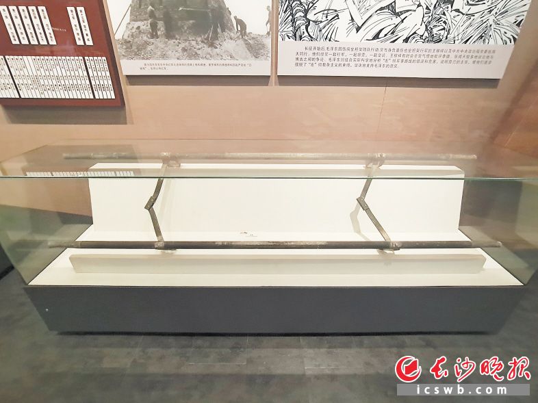 躺在通道转兵纪念馆展台上的红军担架。长沙晚报全媒体记者 黄清辉 摄