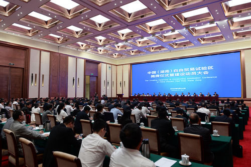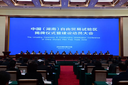 这是9月24日拍摄的中国(湖南)自由贸易试验区揭牌仪式暨建设动员大会现场。 新华社记者 陈振海 摄