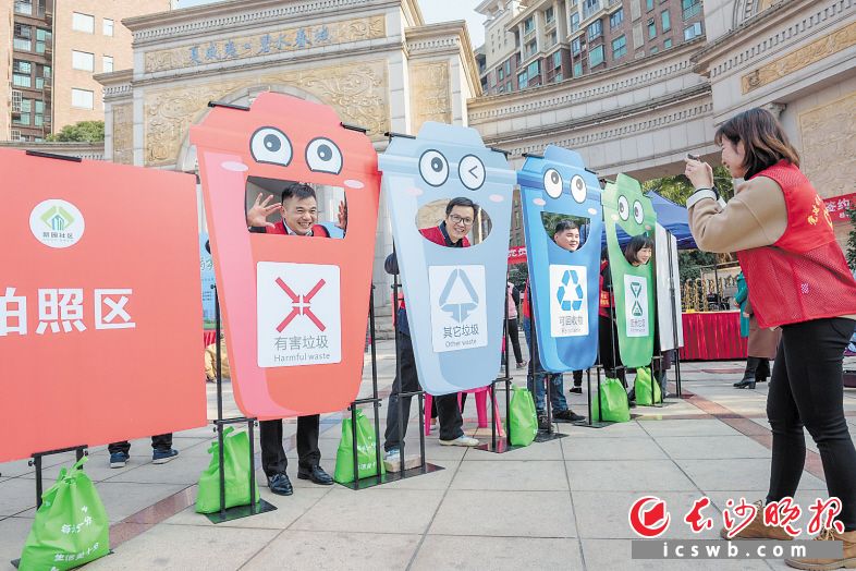 人人投身垃圾分类,个个争当“环保卫士”。长沙晚报全媒体记者 陈飞 摄