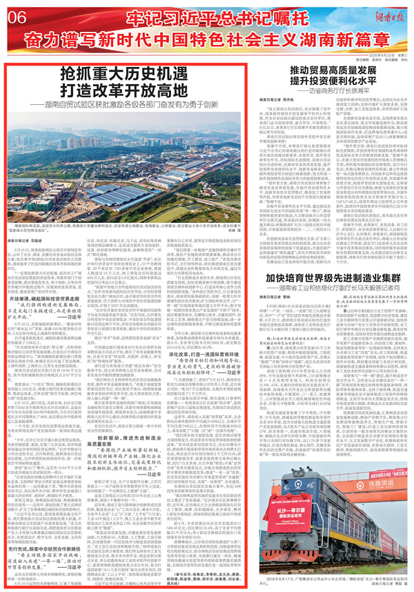 9月21日,国务院新闻办公室召开新闻发布会,公布了北京、湖南、安徽自由贸易试验区总体方案,标志着中国(湖南)自由贸易试验区正式获批,湖南迎来了打造内陆地区改革开放高地的新时代。