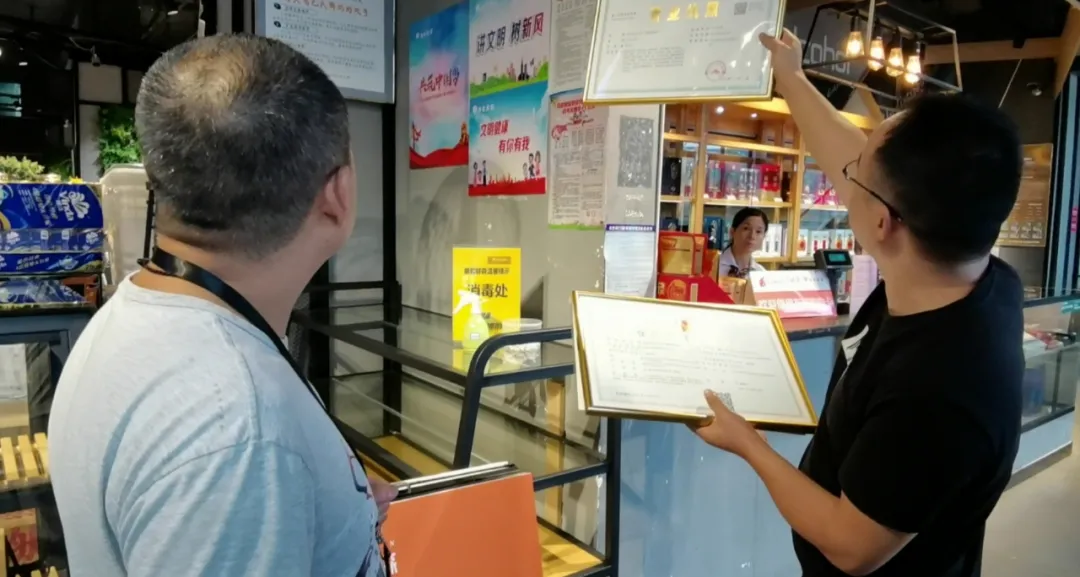 营业执照到底怎么摆才正确?乐和鲜森超市老板犯了难。面对超市老板的疑惑,天心区桂花坪市场监督管理所所长莫进军解释道:“你摆放的位置太靠下了,你可以在进门的这面墙上钉几个钉子,和你的荣誉证书挂一起,醒目又好看。”