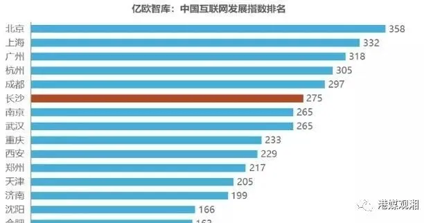 在最新的中国互联网城市发展指数排名中,长沙综合指数排名第六,位居中部第一。