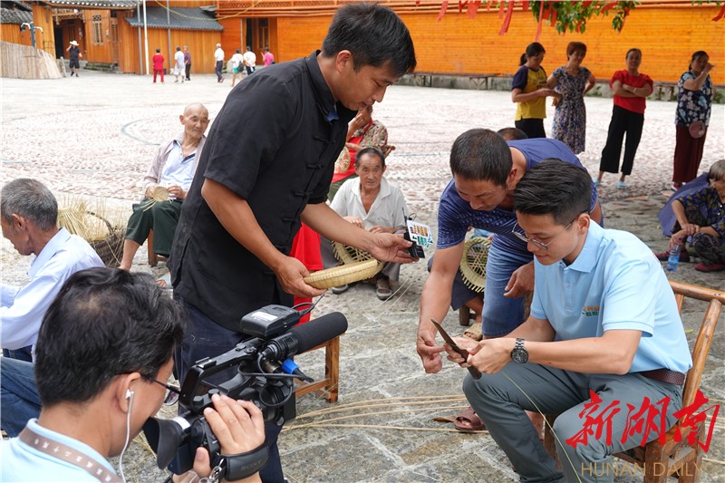 当地竹编手艺人们纷纷与带有央视节目名称的手工艺品合影留念