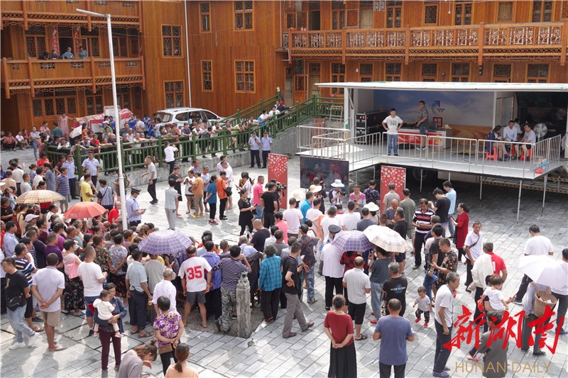 当地村民纷纷围在大篷车的屏幕旁,现场观看家乡直播
