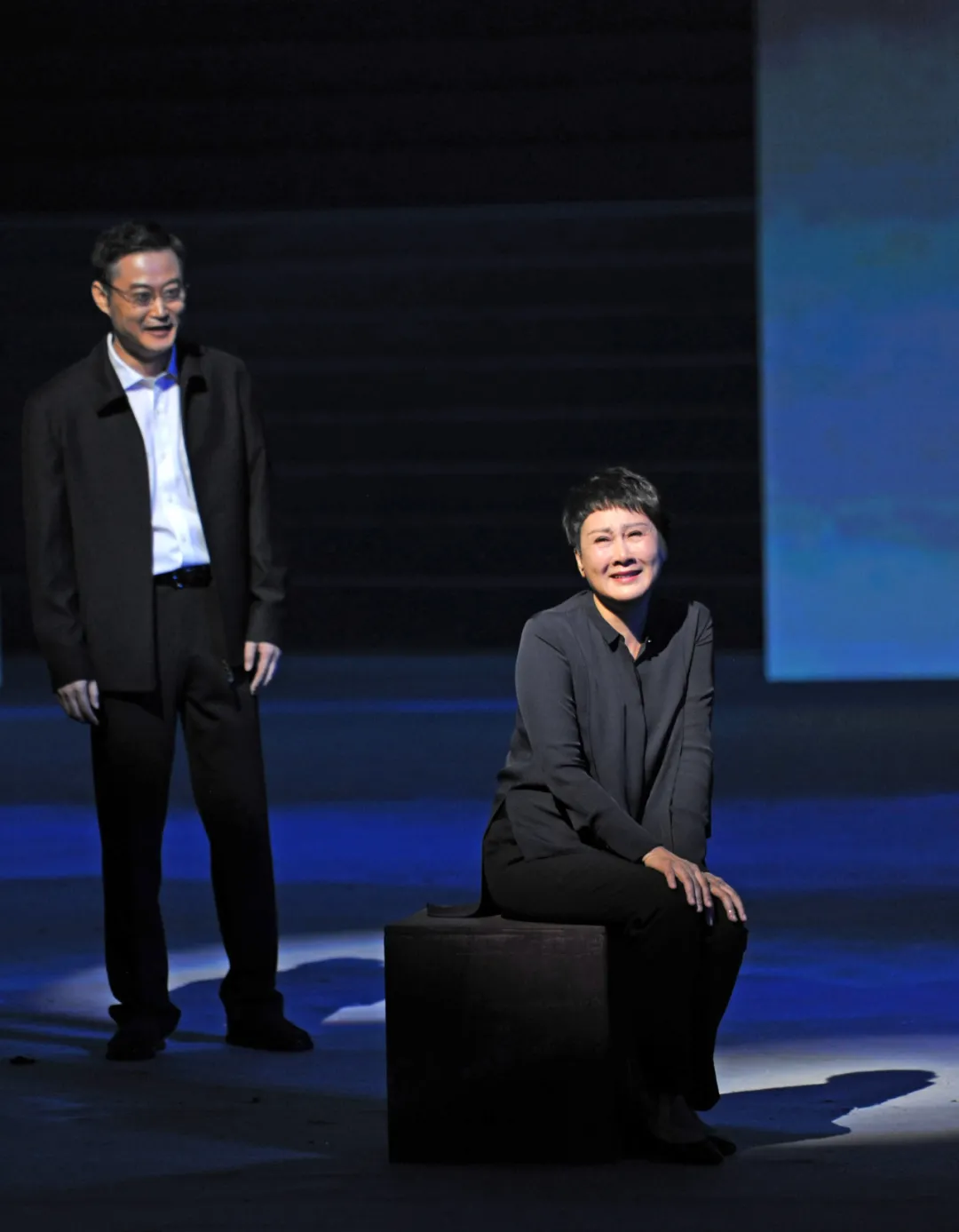 她是国家话剧院一级演员张凯丽。一头气质短发,魅力依旧。在彩排的舞台上,她一张口就夺人热泪,一个动作就把人带入角色。