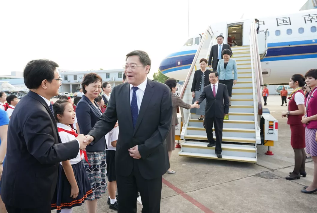 省领导乌兰、傅奎、黄兰香、王少峰、谢建辉、张剑飞、张宏森、刘莲玉、贺安杰参加欢迎仪式,副省长吴桂英同机抵达。