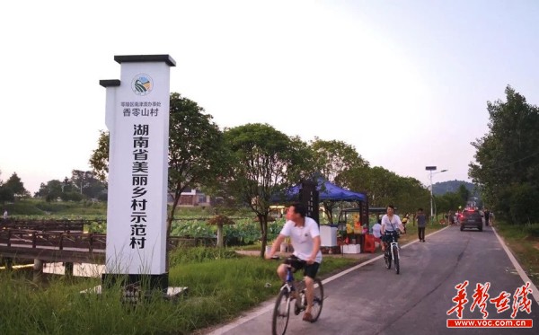 华声在线9月8日讯(通讯员 唐高翔 记者 唐卓婧)秋日,走进零陵区南津渡街道香零山村,田园风光扑面而来。红墙黛瓦的小洋楼绿树掩映、宽敞整洁;山坡上葡萄满架、橘柚飘香;村前大棚蔬菜长势喜人;桂树林前百亩池塘里荷叶田田、鱼虾涌动;环村自行车道两旁翠竹摇曳、小鸟飞翔。