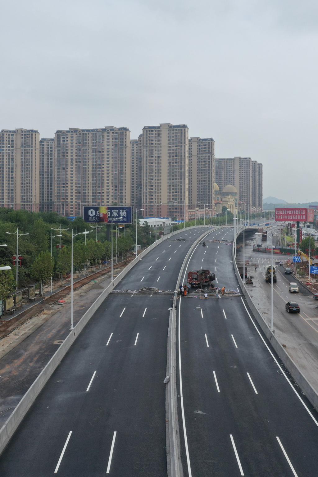 9 月 7 日,芙蓉大道快速化改造工程伊莱克斯跨线桥主体结构已全部完成。当日,该桥梁正在进行桥面伸缩缝的施工,这也是这座跨线桥的最后一道工序。7 日晚的伸缩缝施工结束后,标志着芙蓉大道伊莱克斯跨线桥达到了通车条件。据芙蓉大道快速化改造项目(长沙段)非涉铁段现场负责人向聃介绍,非涉铁段的四个关键节点包括两座主线跨线桥和两个下穿地道。其中环保路跨线桥已于 7 月建成通车。南湖路地道和 x050 县道下穿地道主体结构已全部完成,正在进行地道内附属项目施工。