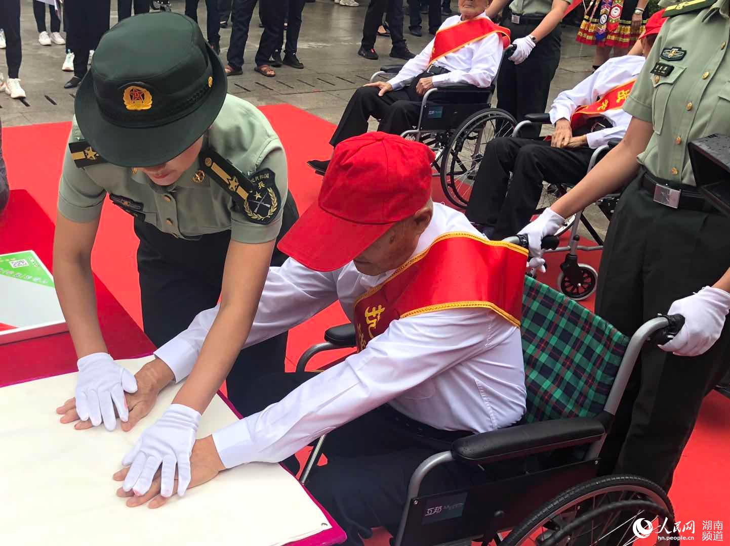 活动于上午11点在芷江县受降纪念馆举行,在奏唱中华人民共和国国歌、向抗战烈士默哀后,少先队员们向5名抗战老兵献上了鲜花,抗战老兵现场拓印手膜,放飞和平鸽,全体人员一起参观“芷江受降”历史文献展。